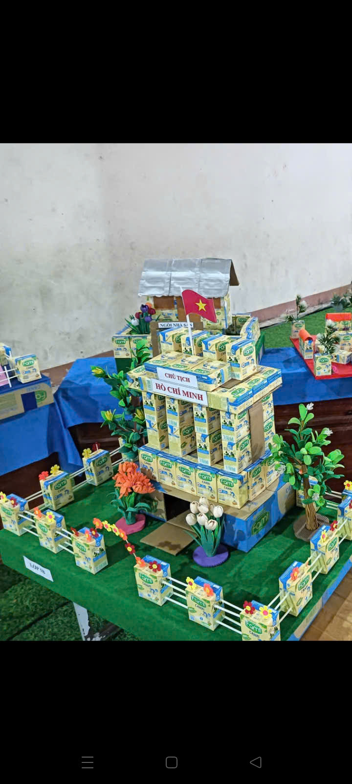 Mô hình Trường TH& THCS Tân Thành làm bằng vỏ hộp sữa Fami