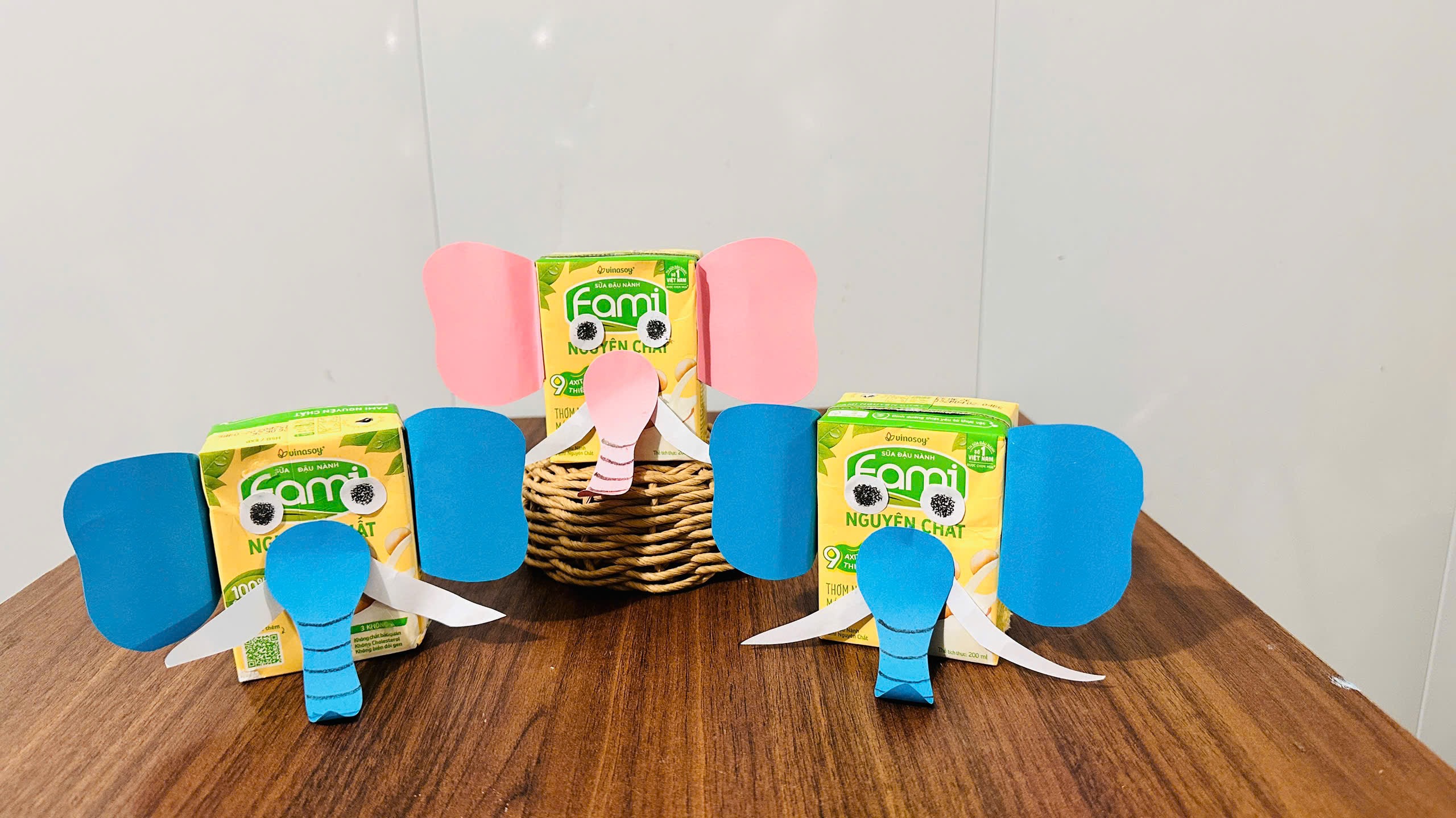 Trong giờ học STEAM, tụi con cùng nhau gom những hộp sữa đã uống xong để tái chế. Từ những chiếc hộp nhỏ gọn, tụi con cắt, dán và trang trí thành một chú voi dễ thương để trưng bày trong lớp. Làm xong ai cũng thích vì từ đồ tưởng như bỏ đi lại biến thành món trang trí xinh xắn. Hoạt động này giúp tụi con hiểu rằng chỉ cần sáng tạo một chút là có thể tái chế đồ cũ, vừa vui vừa góp phần bảo vệ môi trường xanh. 🌱🐘♻️