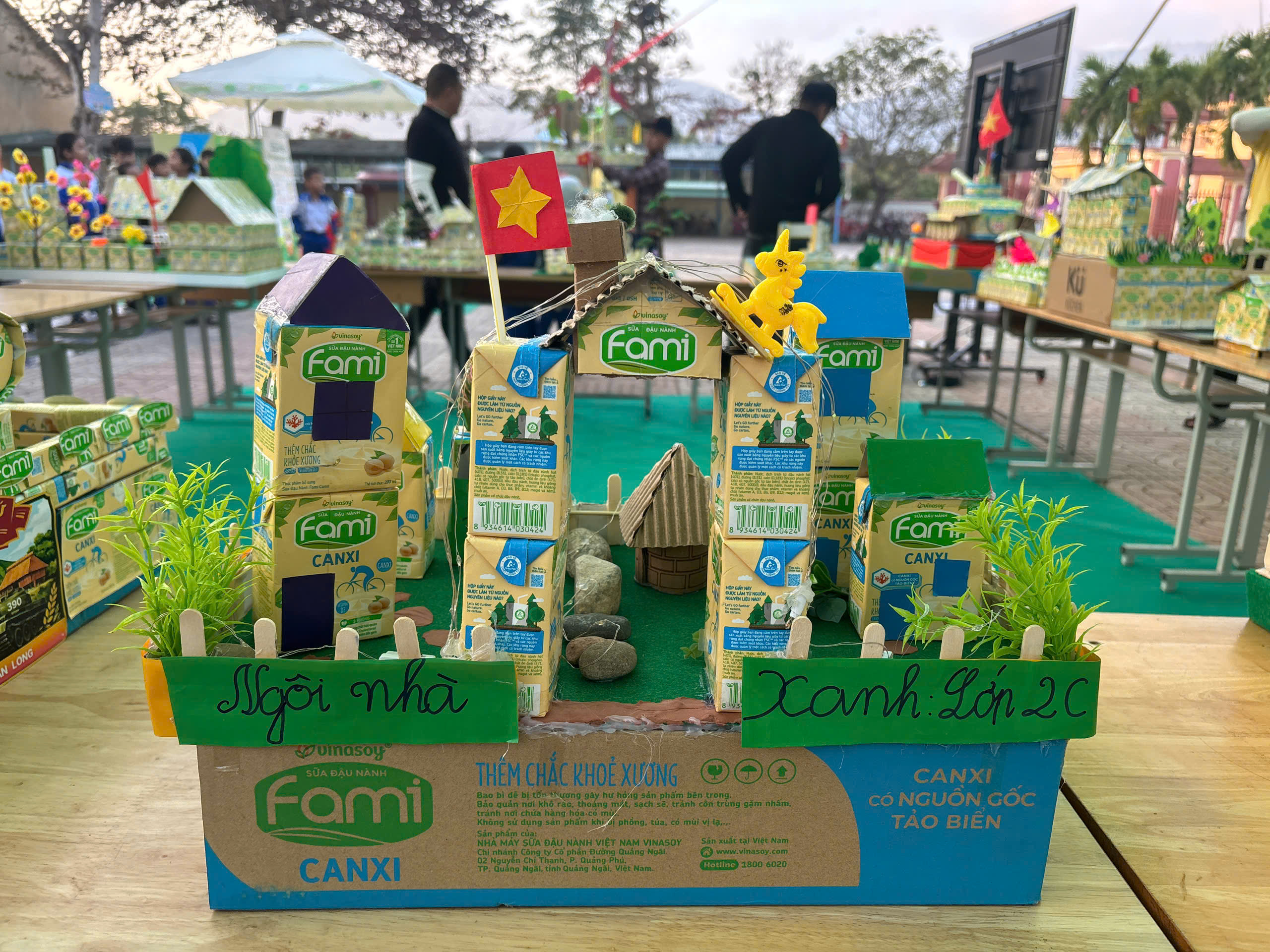 Mô hình “Ngôi Nhà Xanh” mang ý nghĩa giáo dục sâu sắc về khát vọng sống hài hòa với thiên nhiên và bảo vệ môi trường. Ngôi nhà xanh tươi từ vỏ hộp sữa được các em tạo nên với mái nhà phủ cỏ, vách nhà leo đầy cây leo và khu vườn nhỏ phía trước. Với các em, đây là hình mẫu về ngôi nhà của tương lai — nơi con người và thiên nhiên sống cùng nhau, nơi mỗi gia đình đều ý thức tái chế và bảo vệ môi trường sống.