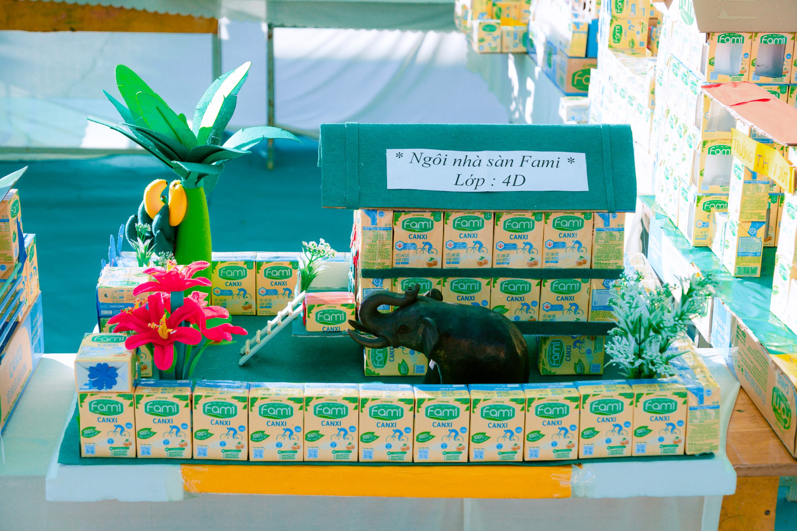 Nhà sàn – biểu tượng văn hóa đặc trưng của các dân tộc Tây Nguyên và miền núi Việt Nam – đã trở thành nguồn cảm hứng sáng tạo tuyệt vời cho nhóm chúng em trường Tiểu học Y-Jút. Từ những vỏ hộp sữa Vinasoy tái chế, chúng em tạo dựng mô hình nhà sàn truyền thống với sàn nhà nâng cao, hàng cột vững chắc và mái lá cong vút đặc trưng. Cầu thang gỗ nhỏ xinh dẫn lên sàn, xung quanh nhà có vườn rau và chuồng trại nhỏ. Chúng em tự hào được tái hiện nét kiến trúc của ông bà tổ tiên qua đôi bàn tay học trò. Mô hình nhắc nhở chúng em gìn giữ bản sắc văn hóa dân tộc và sống hòa hợp với thiên nhiên – điều mà người xưa đã thực hành từ bao đời nay.